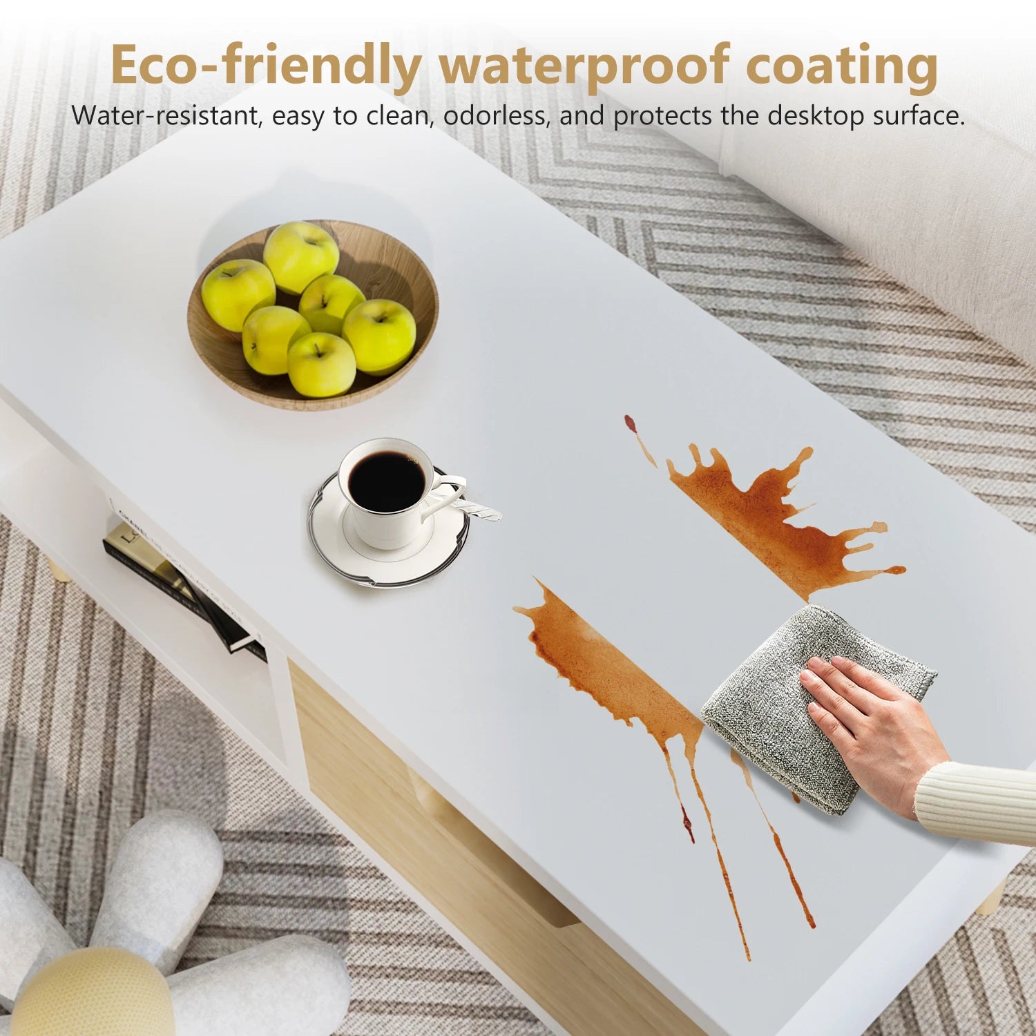 Accidental spills are no problem. The eco-friendly, odorless waterproof finish simply wipes clean — coffee, juice, or crumbs disappear with a quick swipe. Low maintenance and kid/pet friendly, it keeps the surface looking fresh for years.