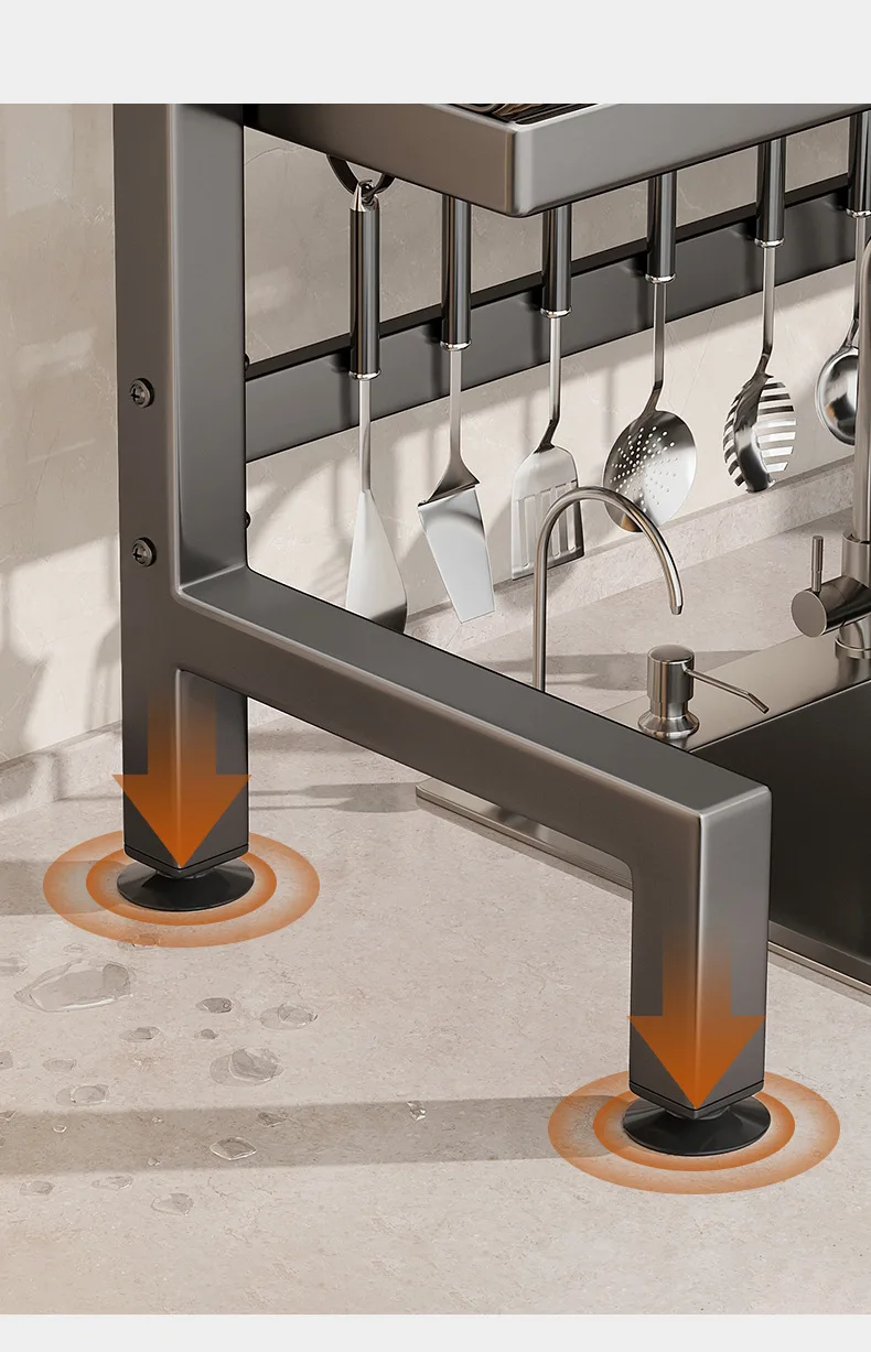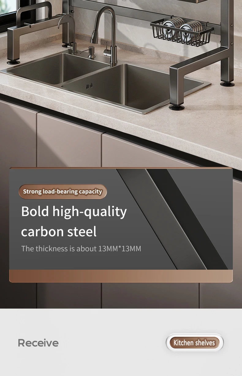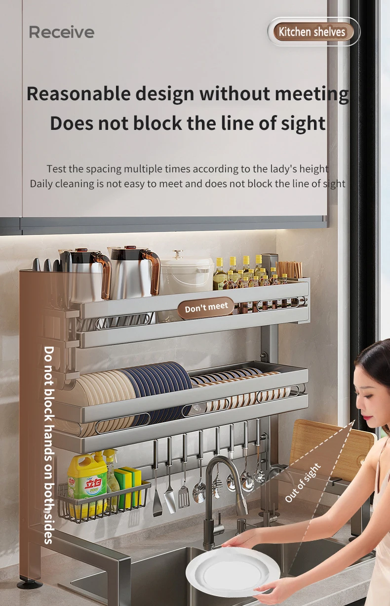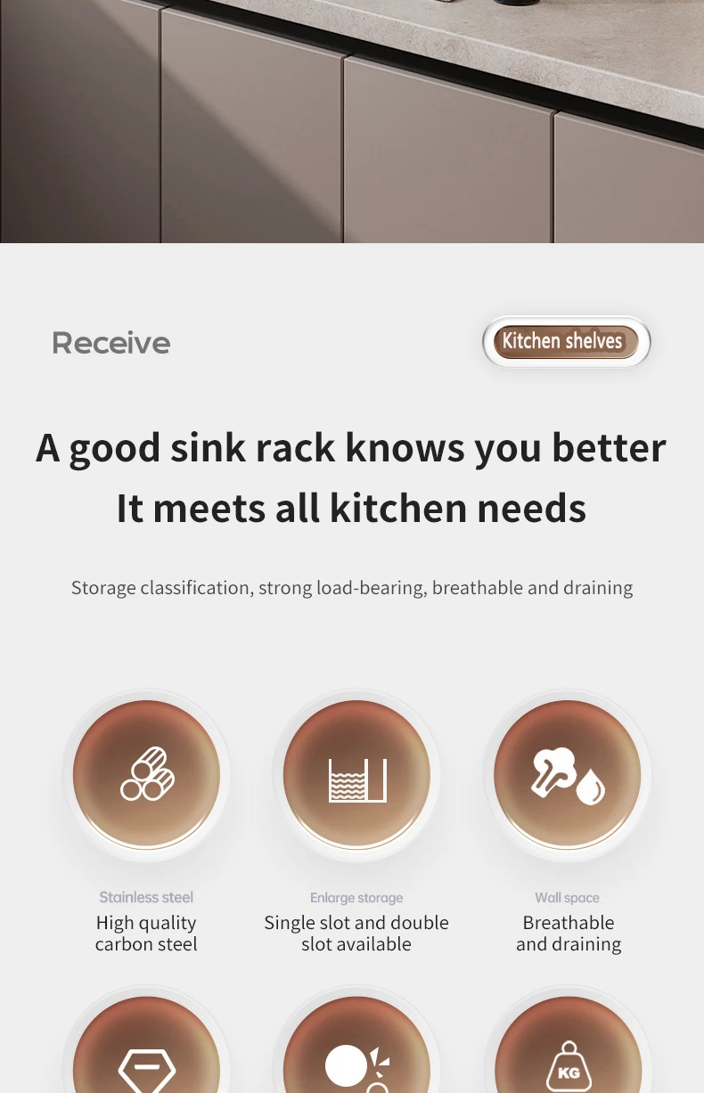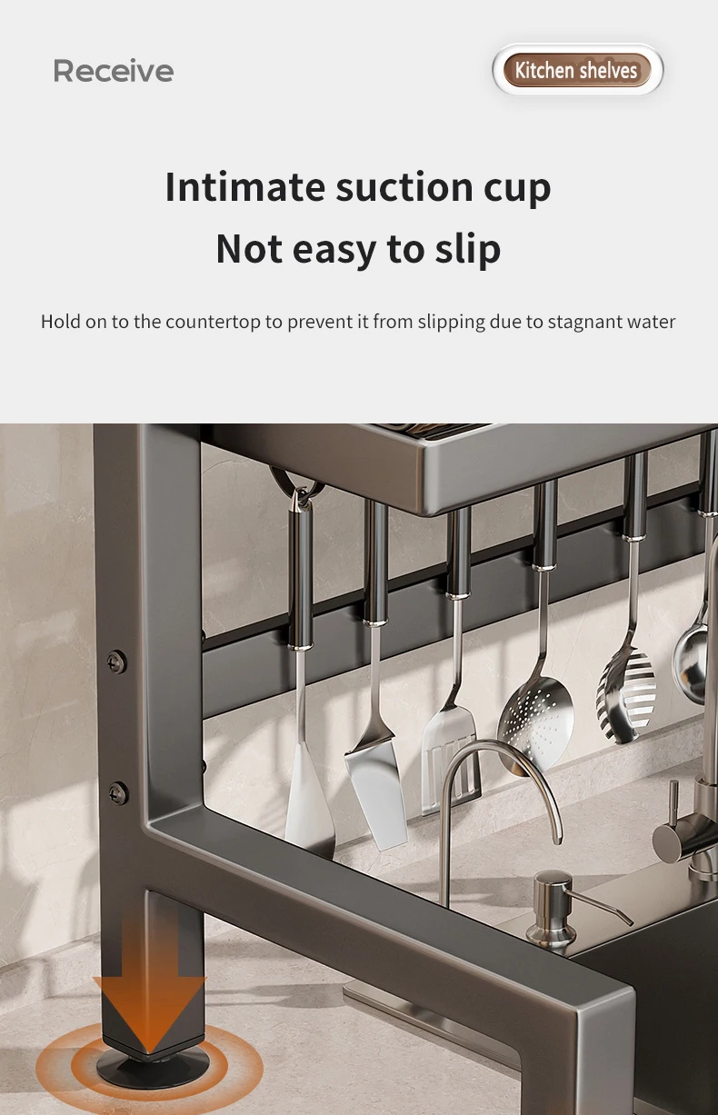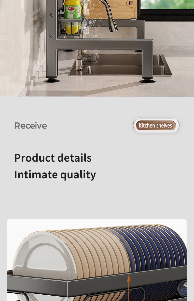 1. Keep your kitchen organized and clutter-free with our Kitchen Sink Organizer Shelf, designed to maximize storage space above your sink for dishes, bowls, and utensils.