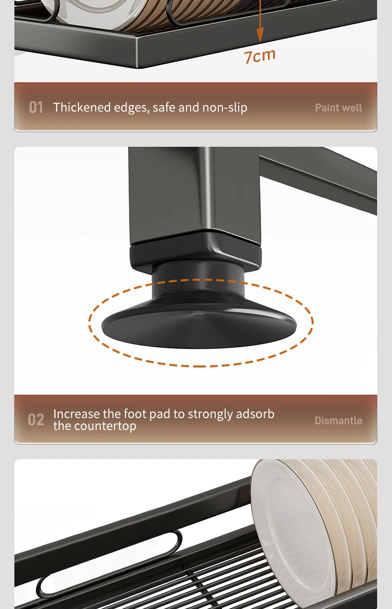 4. Made from high-quality materials, our Sink Dish Drainer Shelf is sturdy and durable, providing long-lasting use for your daily kitchen tasks.