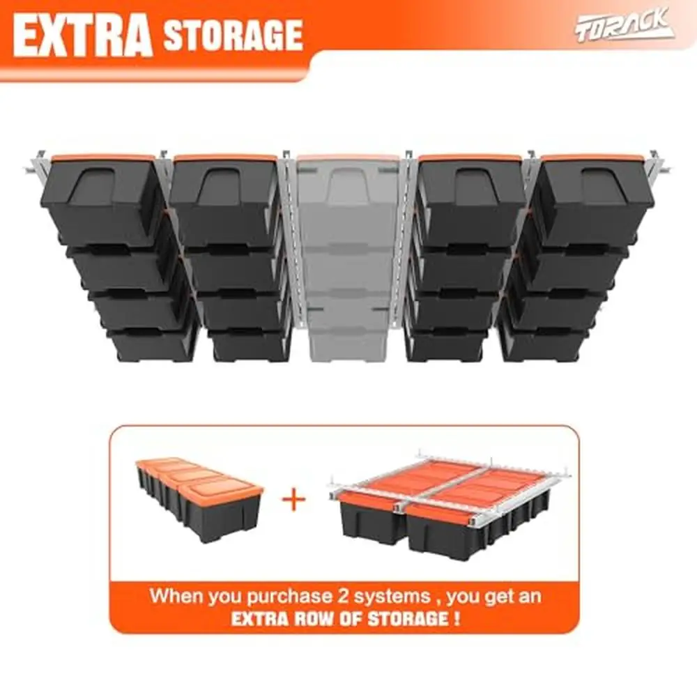 Declutter Your Garage-Our overhead bin storage racks keep items off the floor and protected. Organize your garage and free up floor space. Conveniently store gear overhead with tote storage system.