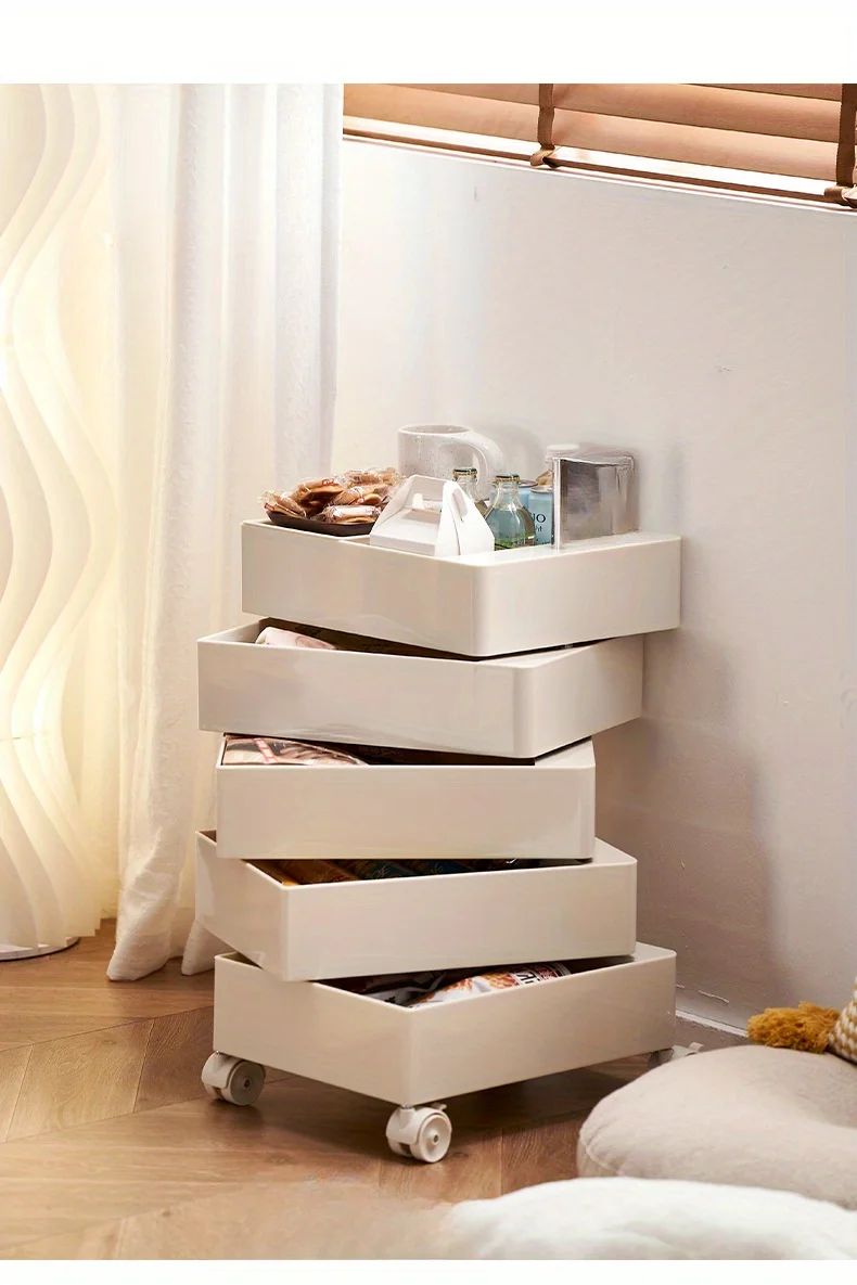 Rotating Storage Cabinet Movable Bedside Table Side Cabinet Cosmetic Storage Cabinet Bedroom Living Room Furniture Nightstand